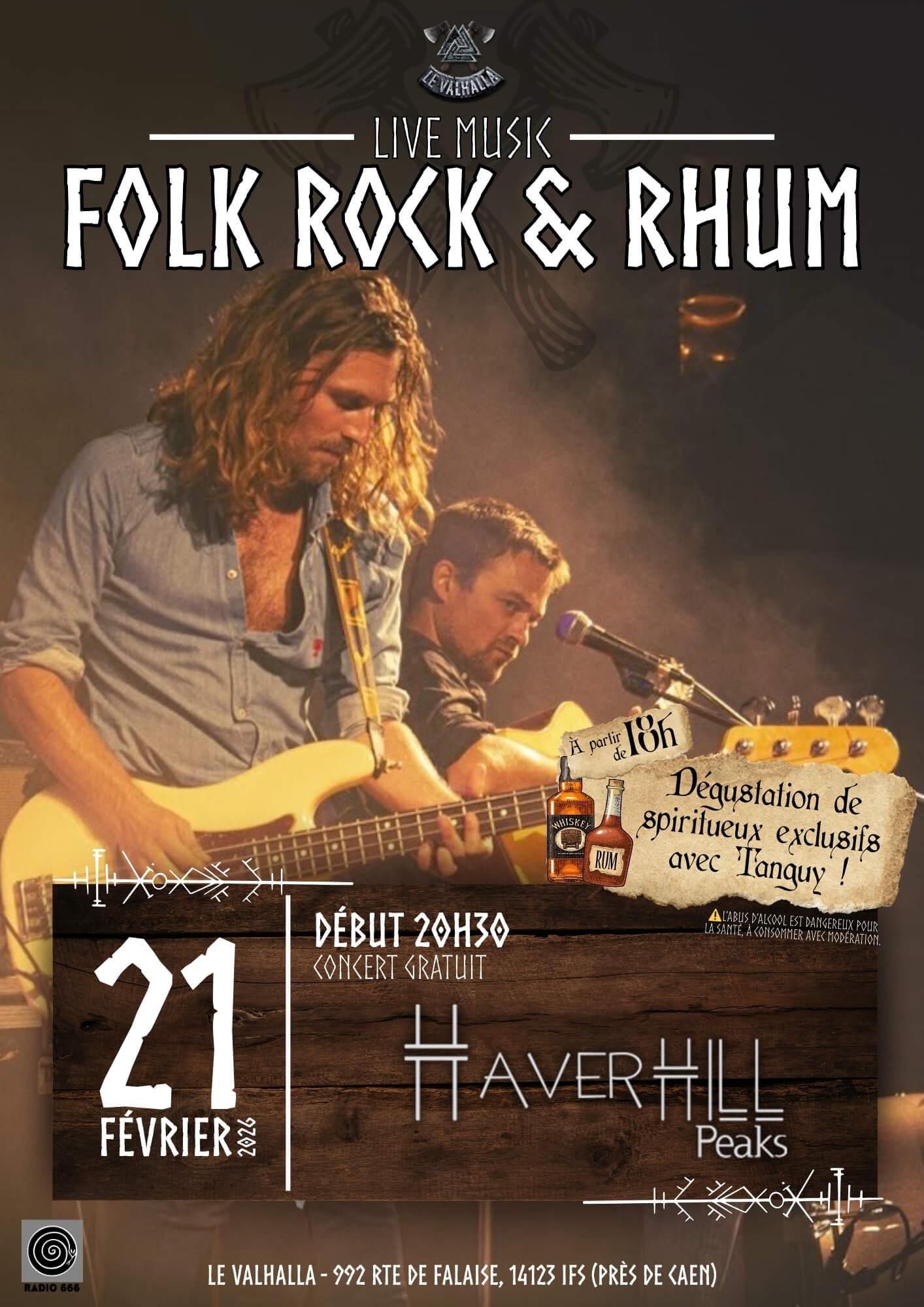 Le 𝟐𝟏 𝐟𝐞́𝐯𝐫𝐢𝐞𝐫 𝟐𝟎𝟐𝟔, Le Valhalla vous ouvre ses portes pour une soirée unique avec HAVERHILL PEAKS : Folk doux, guitares chaleureuses et voix envoûtantes. Et pour sublimer l’ambiance, une 𝐝𝐞́𝐠𝐮𝐬𝐭𝐚𝐭𝐢𝐨𝐧 𝐞𝐱𝐜𝐥𝐮𝐬𝐢𝐯𝐞 de spiritueux vous attend… L’Alliance parfaite entre musique et découvertes gustatives.🥃✨