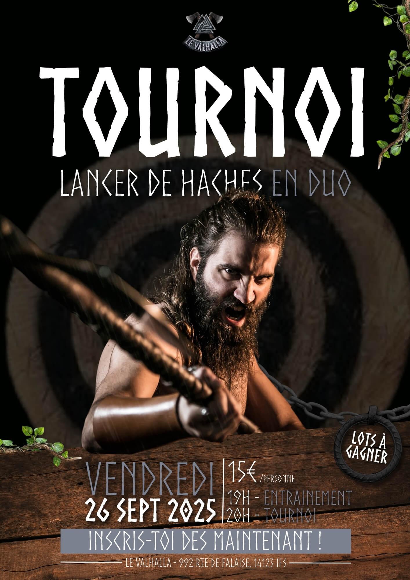 Le Valhalla, bar viking de lancer de haches situé à Ifs (près de Caen), organise un tournoi de lancer de haches le vendredi 26 septembre 2025.